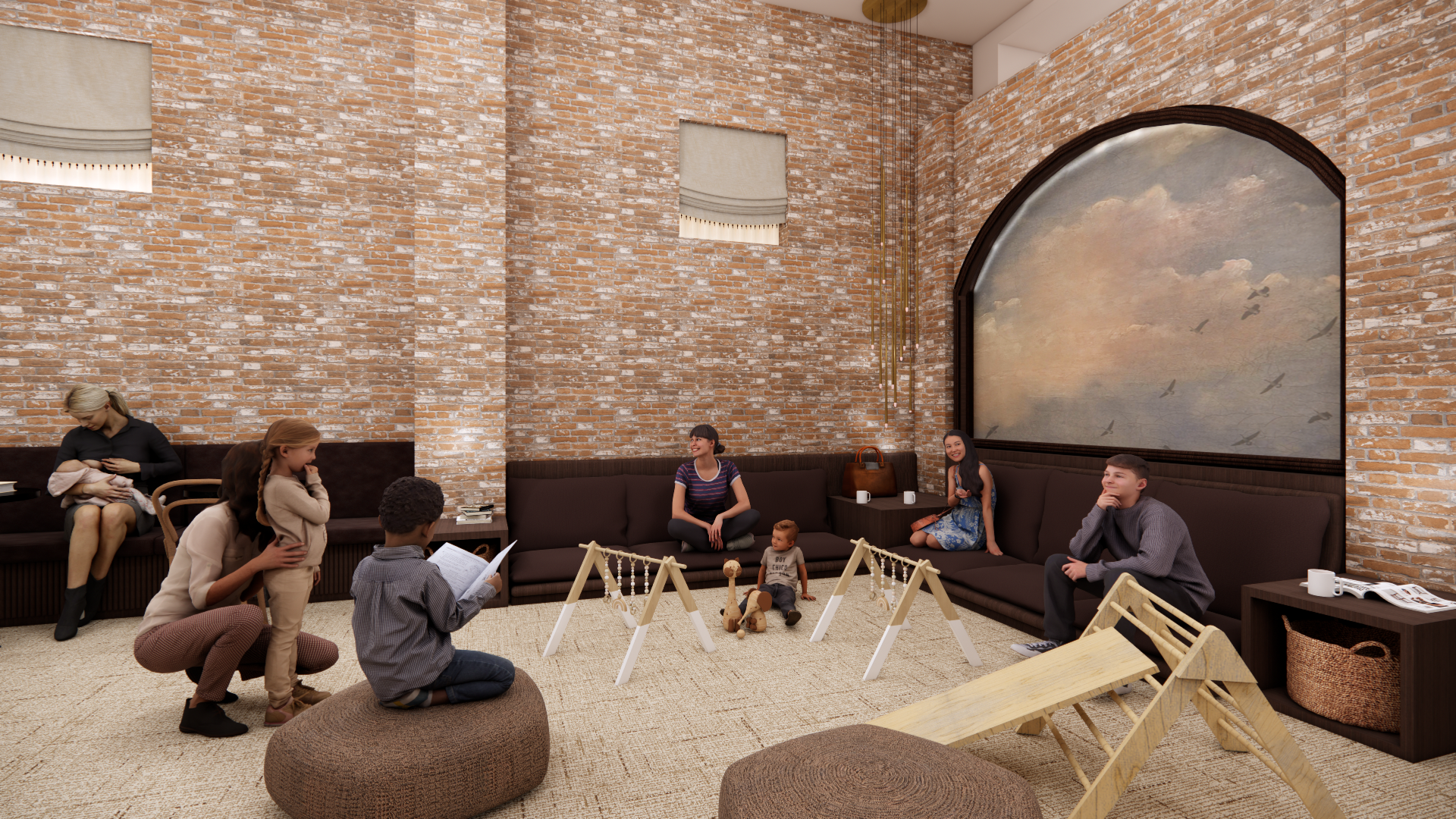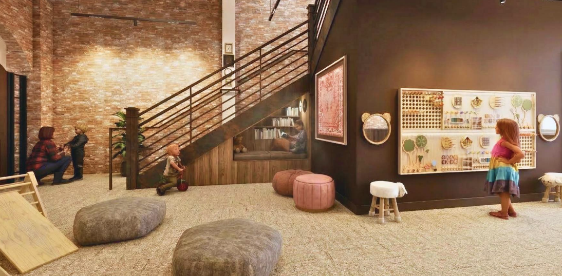 We’ve got the same warm, welcoming lounge that promotes comfortable seating for adults while they are able to see their kiddos playing around them. On the same floor as our Zen Room & Classroom.